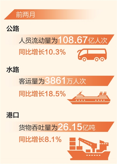 本报北京4月1日电(记者韩鑫)记者近日从交通运输部获悉:前两月,我国客运、货运、港口吞吐量等交通运输行业多项统计指标实现正增长。